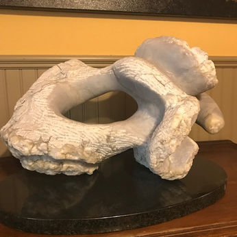 I have been drawn to sculpture since making my first bright yellow snake sculpture in Kindergarten. Never knowing what the pull was until I was introduced to stone carving in college, by Phil Evett. It became abundantly clear! The limestone had craggy lines to explore and faults to highlight, roughness to smooth and divots to erase. I work with the stone and what it has to offer. This leads my work to be highly organic in nature. I work in limestone, alabaster, marbles, calcite… whatever speaks to me at the moment.